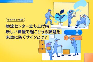 地域に愛される施設を目指したいという施設開発責任者の想いに応えるべく、柔らかなタッチでプロロジスの施設内で行われている物流業務をイラストで表現。